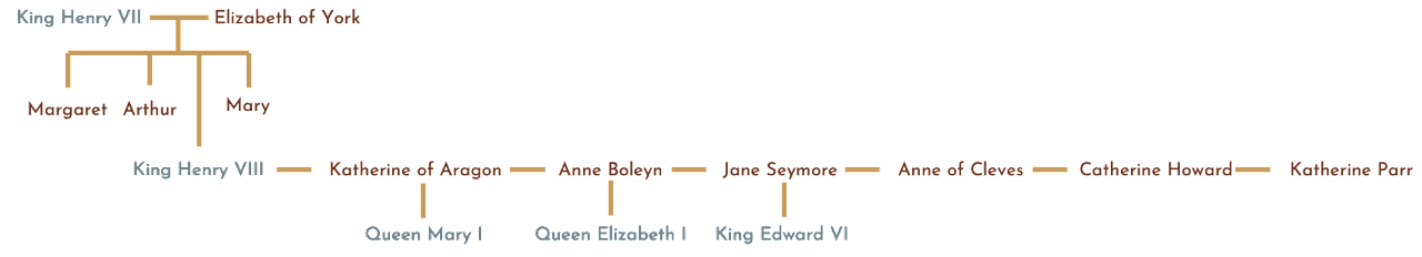 Henry VIII is one of England's best known monarchs, famous for his break from the Catholic Church that began the English Reformation, and for his six wives. After Henry VIII's death in 1547, his son, Edward VI, became king at only 9 years old. Edward VI died young and left the throne to his older half-sister, Mary I, also known as 'Bloody Mary', who became the first queen of England in 1553. Finally, Elizabeth I, the 'Virgin Queen', took the throne in 1558 and died childless in 1603, ending the Tudor line.